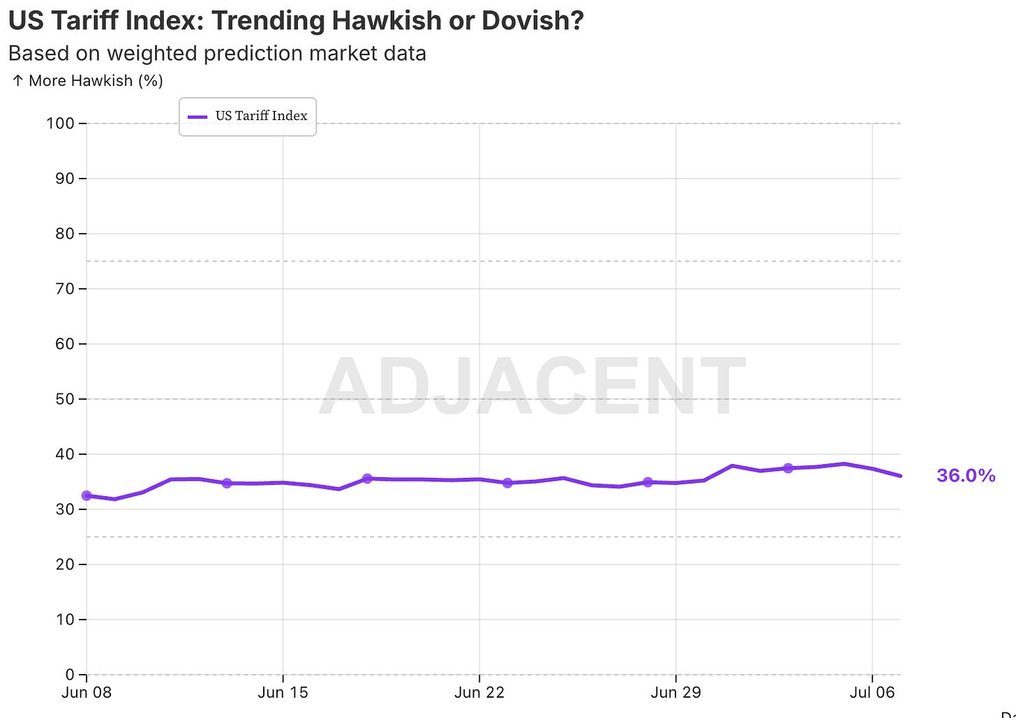 It’s about the tariff term moving from the 9th of July to the 1st of August. TACO it is after all… But thanks to that the EU is hopeful to reach a deal in time. Adjacent chart is aligned with this thesis.