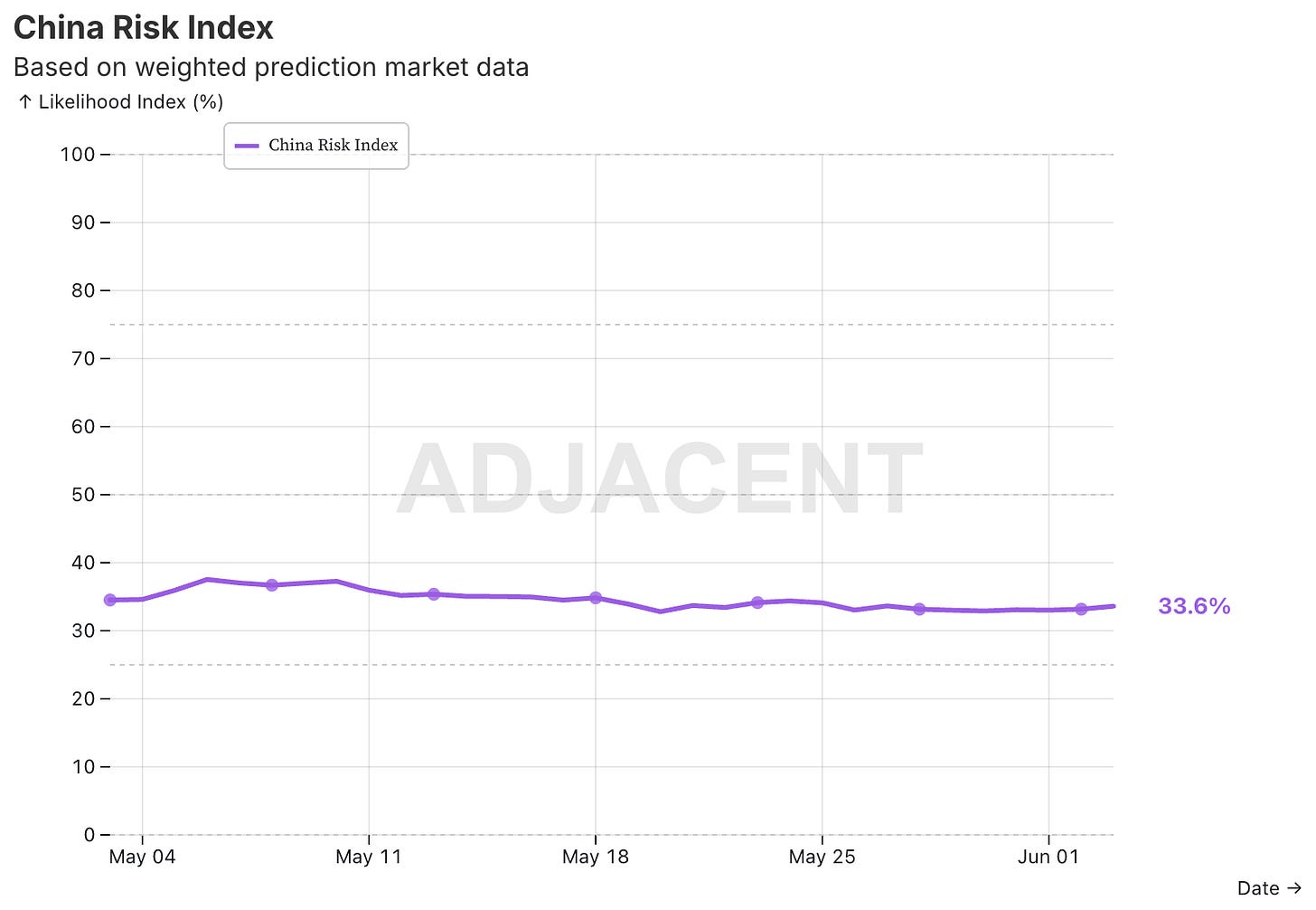 I mentioned Shangri-La speech in the US Inc. section, but I’m confident that it didn’t sit well with China. What can I say, general tensions in the region are expected. Nothing else to report (for now). China risk index looks pretty low now though: