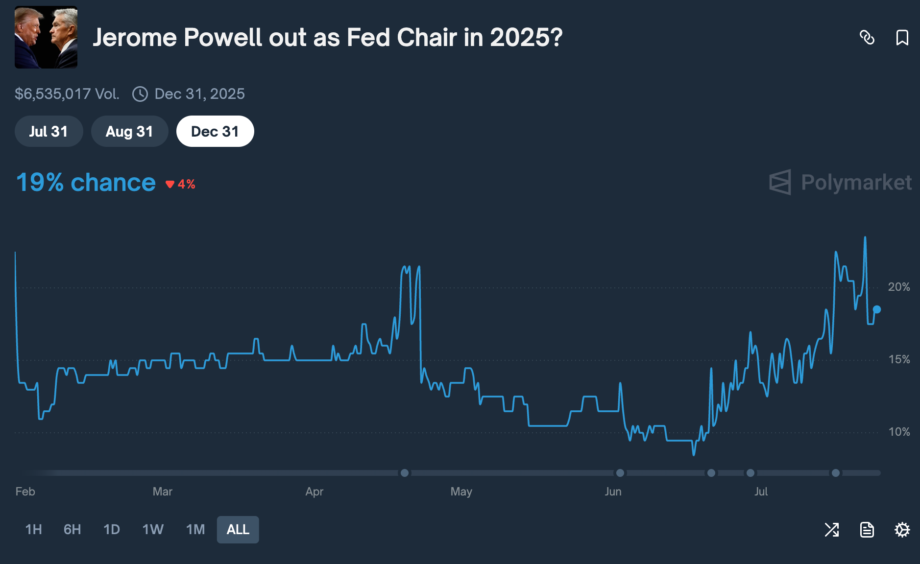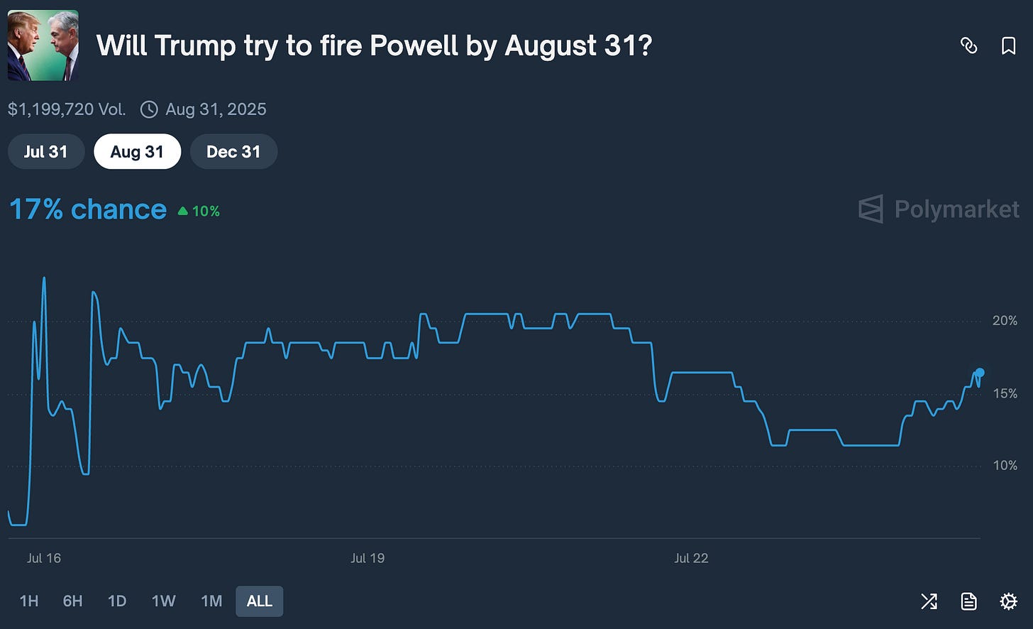 I don’t see not only a way to increase the pressure, but also Powell suddenly deciding that he had enough. it would have had already happened. Thus the chances of that are 0%.