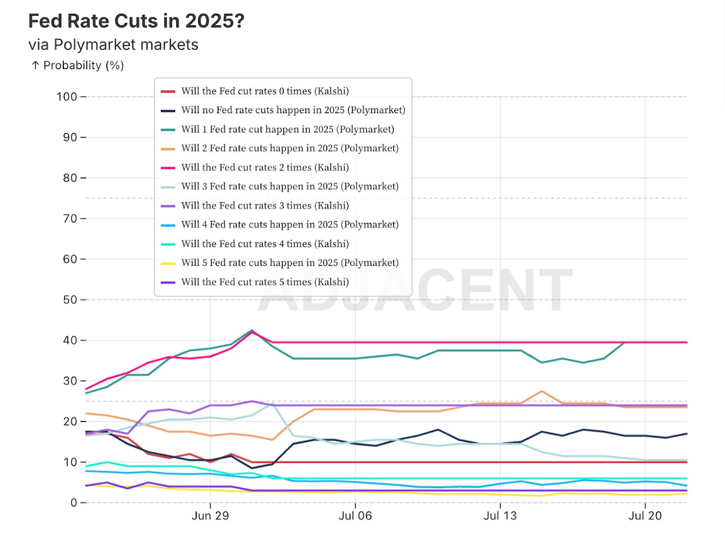 I have ca. 8% of my bankroll on No with average entry price of 73.8c, which I consider a massive deal seeing that my fair odds sum up to 96.7/3.3 fair price. I will be waiting for subsequent spikes, which I expect to see around the FOMC meetings, to buy more as this one is probably the best bond on the platform right now.