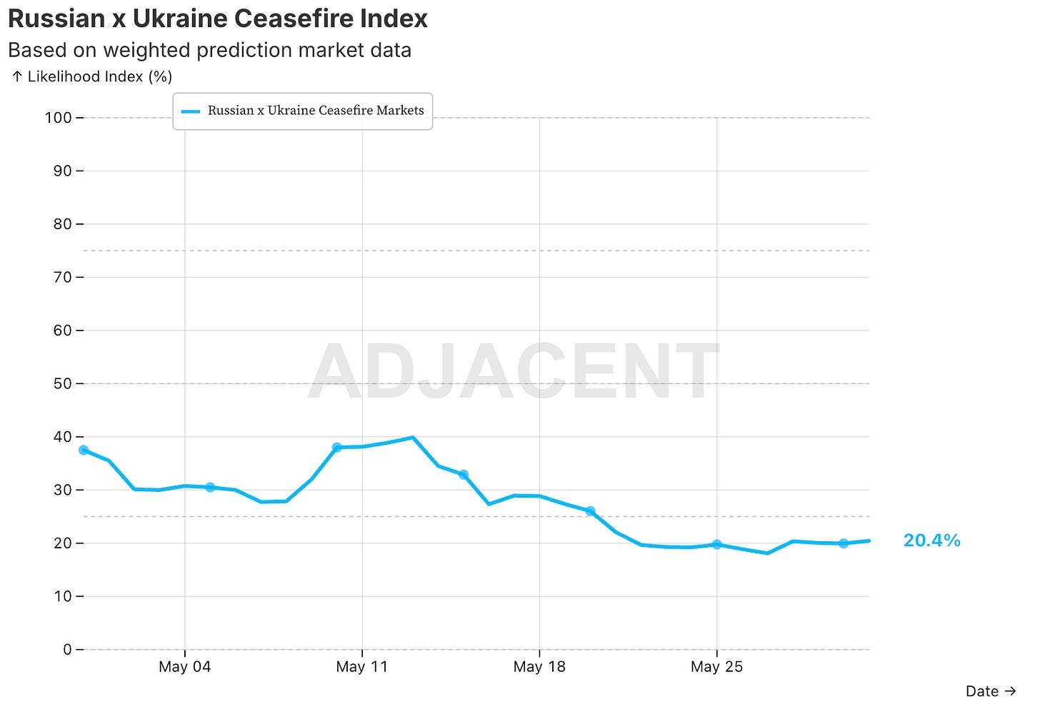 We are way past the point of hope in terms of Ukraine ceasefire. The short and medium term markets have little doubt while the 2025 market is tilted towards No at the moment. Overall, the situation looks bleak for peace: