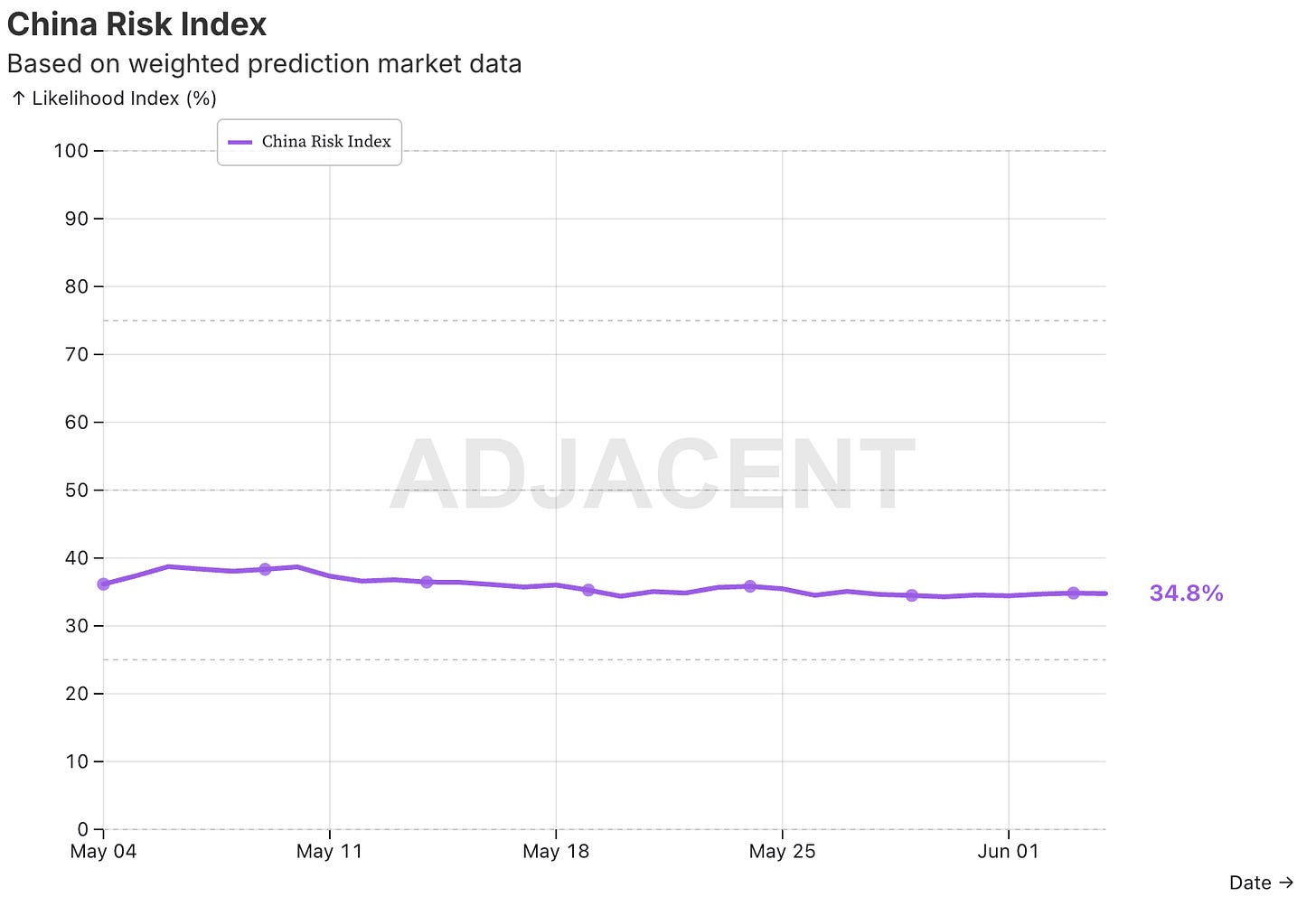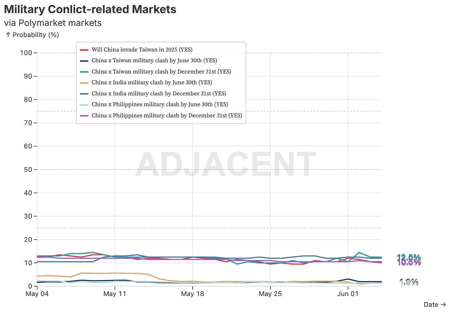 While the overall China risk index is relatively high, the military components of this index are still on the lower side, mainly because the timelines on these markets don’t go beyond 2025: