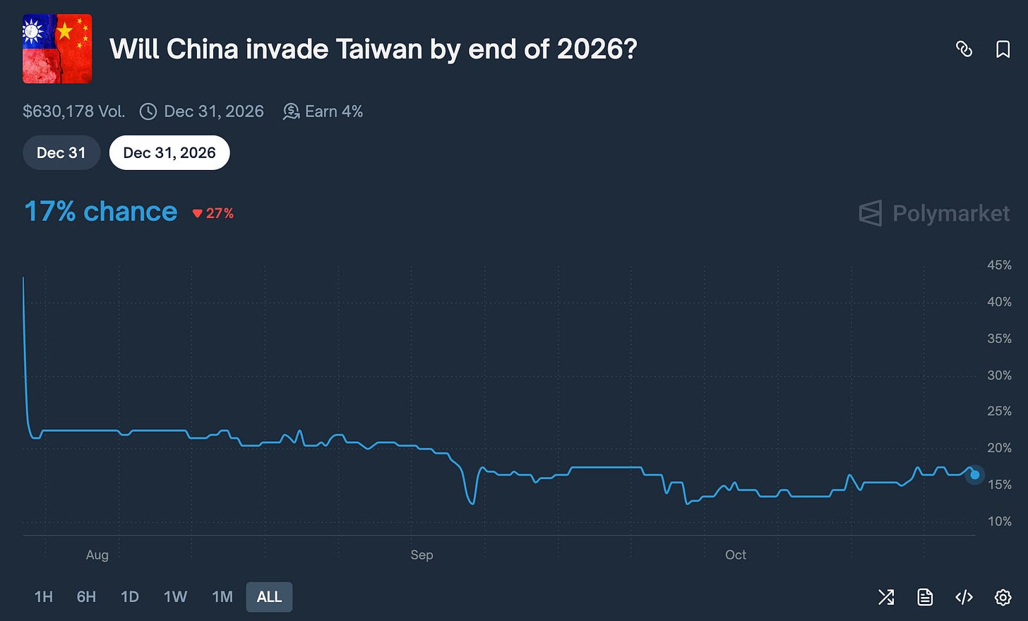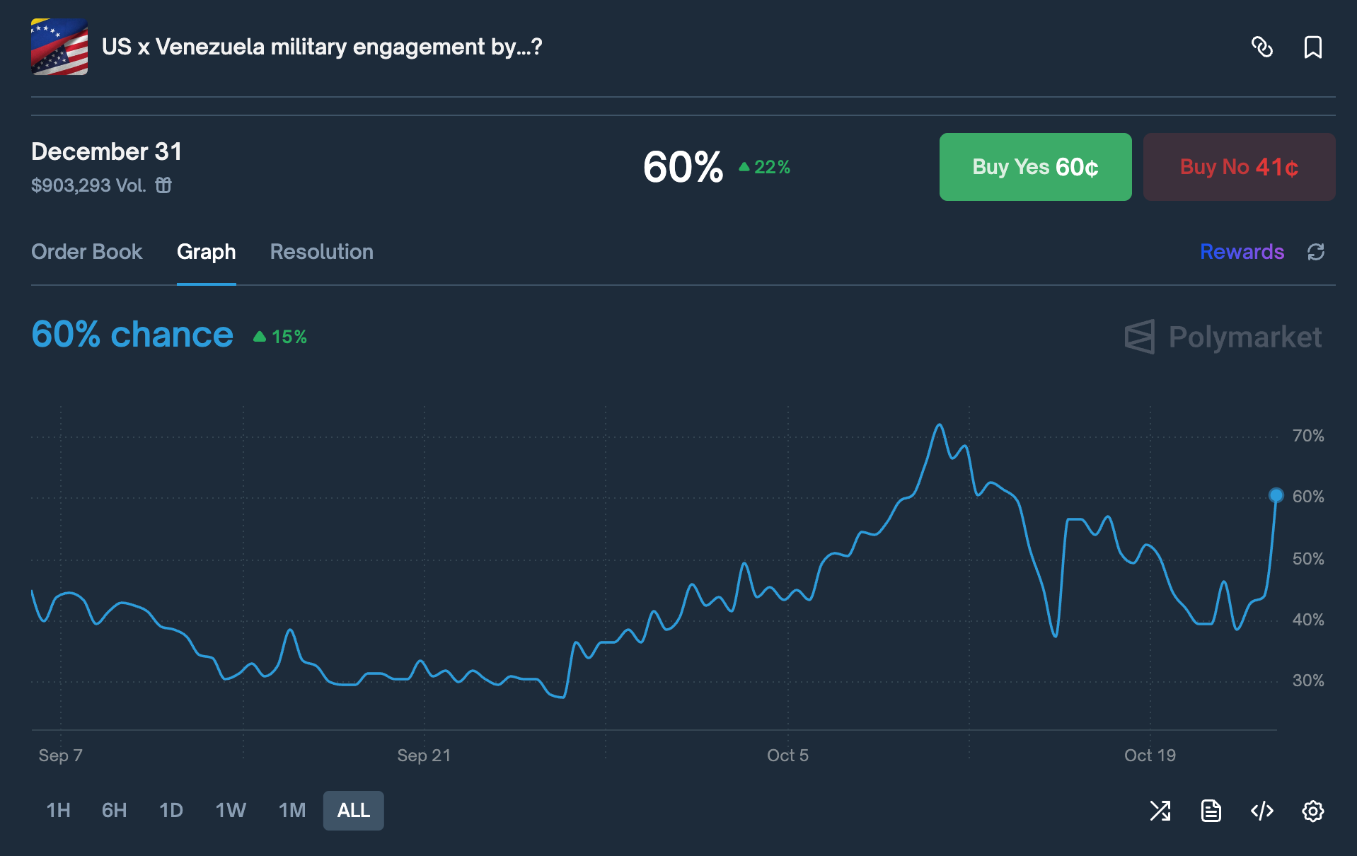The US is already getting ready for military action in Venezuela (which is essentially a Chinese land now) and we might just see it this year. I’m still weighing on the timelines, but I will be a buyer of Yes in small quantities for the longer timelines while I research the issue. Gut feeling tells me it can start pretty shortly after the shutdown is over.