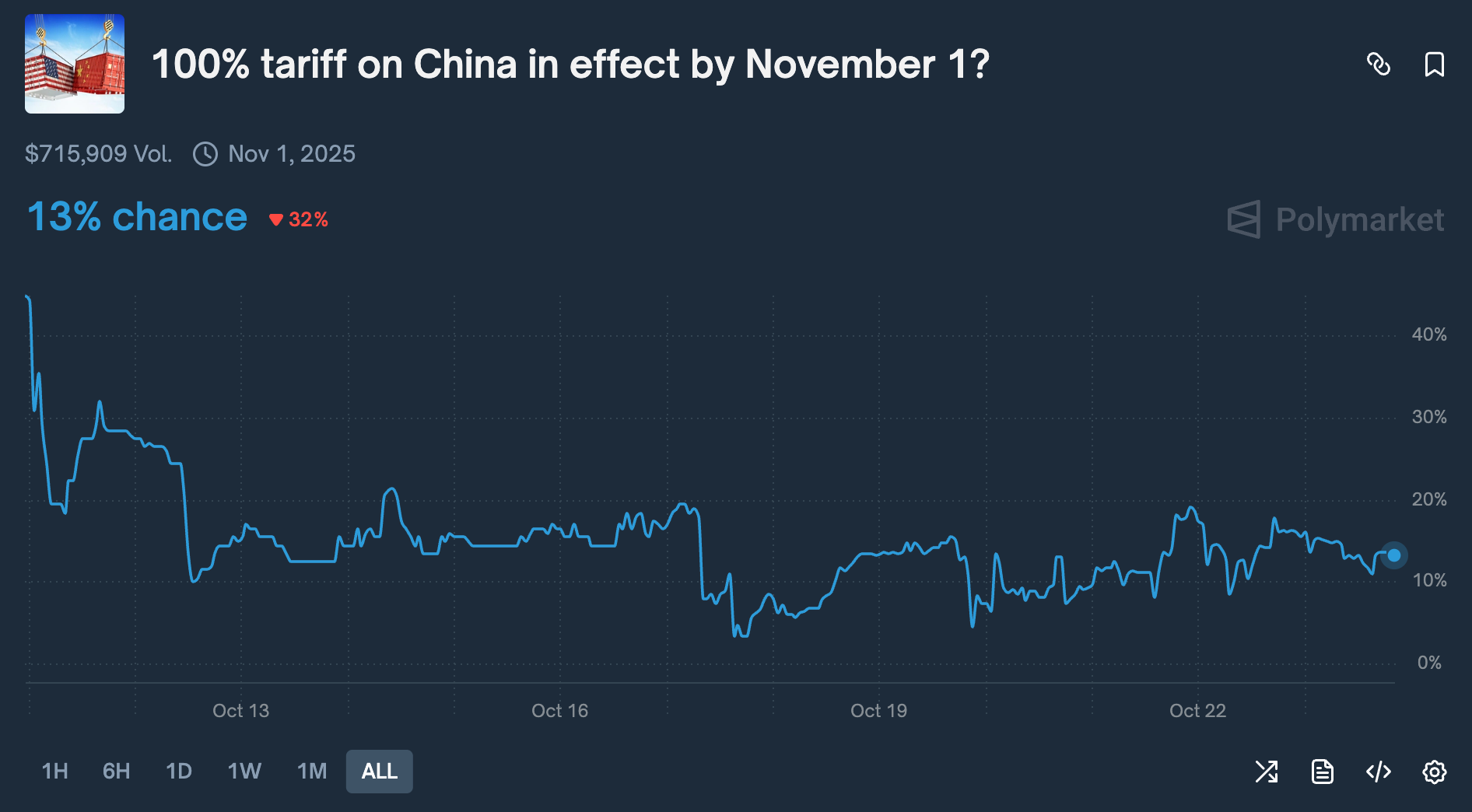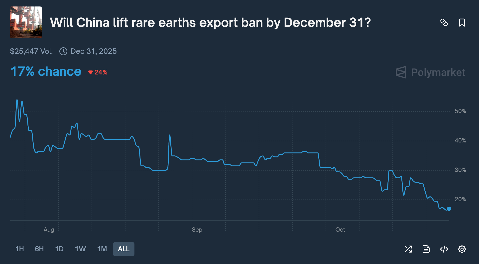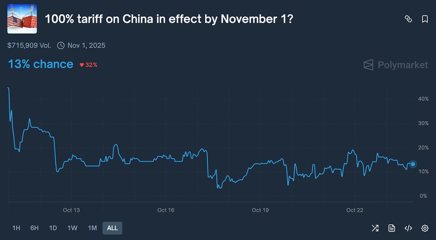 I’m not sure why people believe in TACO so much, we had over 100% on China already. And with the rare earth embargo, I do think that China is not looking to settle soon. In fact it is escalating.