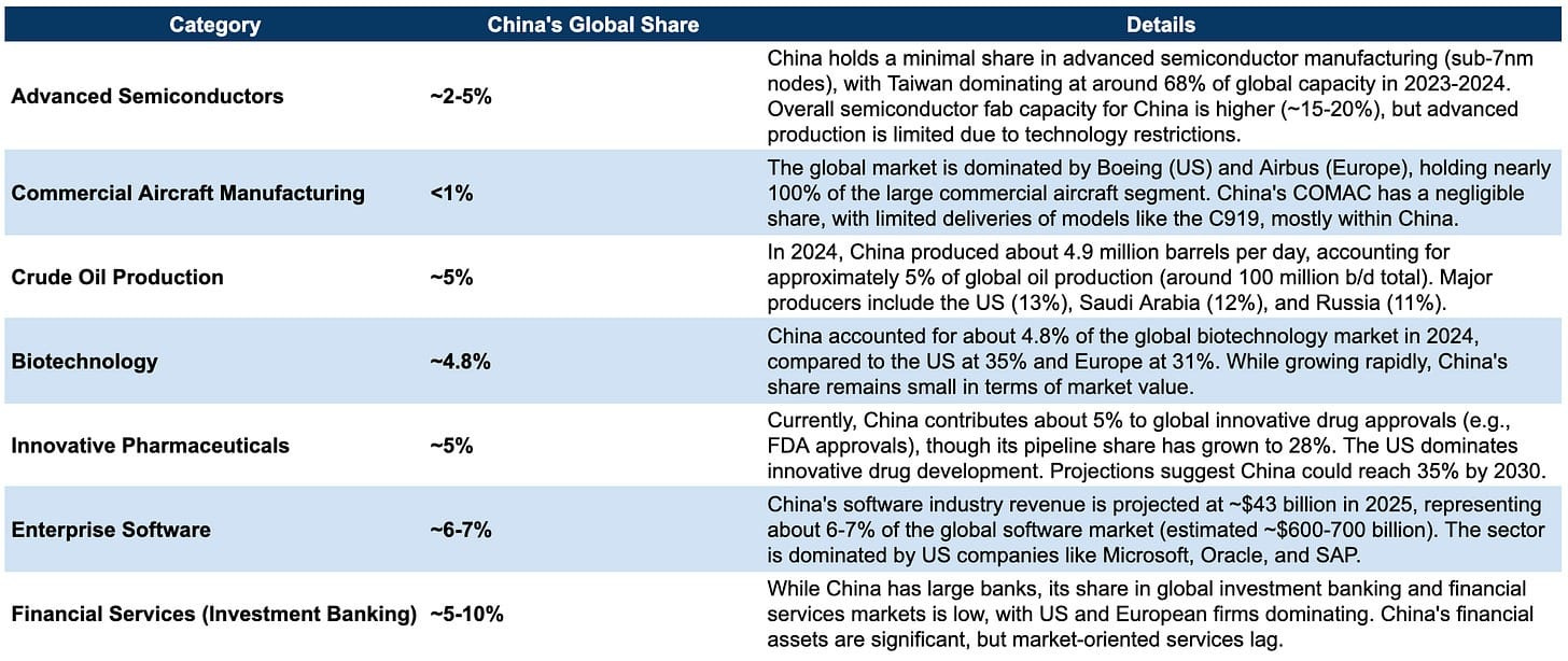 As China has industries it dominates, it also has industries it lacks in severely. The west can leverage them to curb Chinese embargo.
